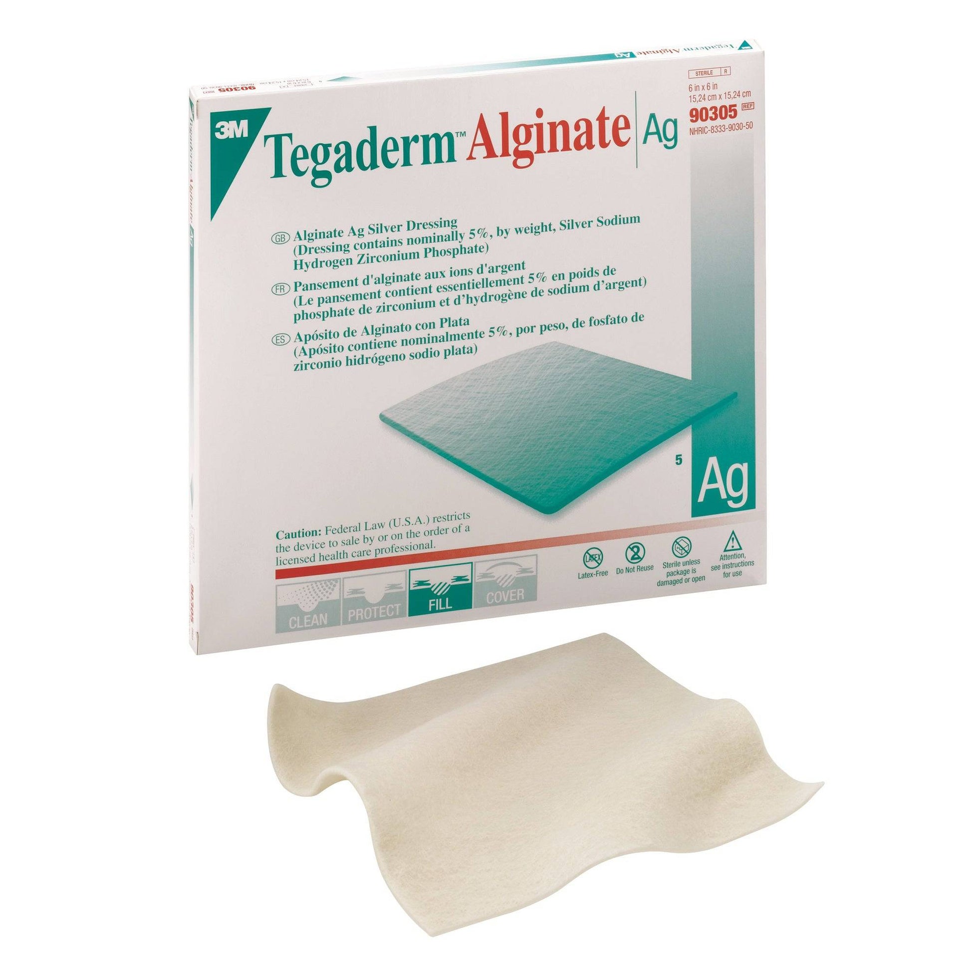 3M Tegaderm Alginate Ag Silver Dressing highly absorbent, antimicrobial wound dressing with an ionic silver complex to provide antimicrobial protection. 3M Tegaderm Alginate Ag Silver Dressing highly absorbent, antimicrobial wound dressing with an ionic silver complex to provide antimicrobial protection.