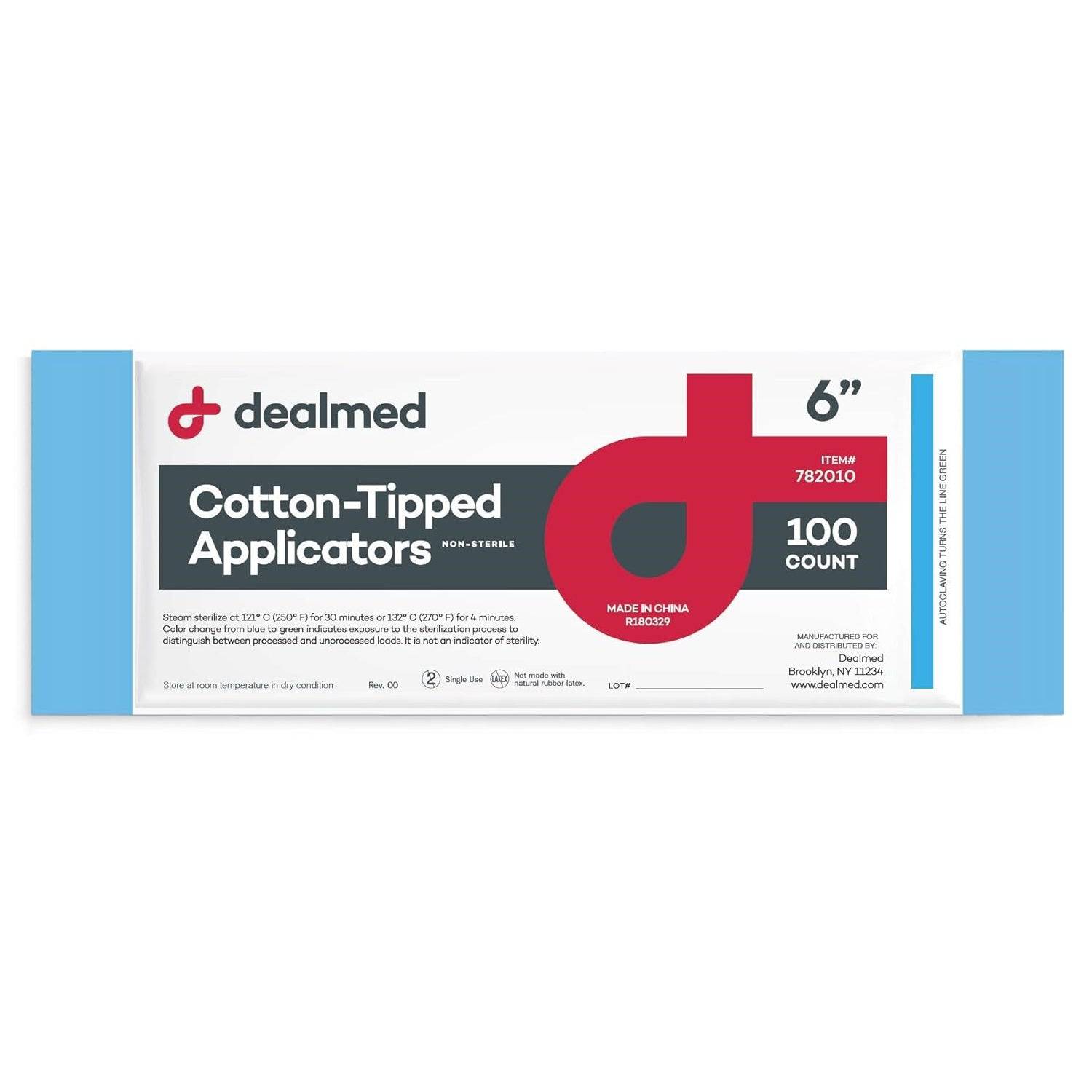 Dealmed Cotton-Tipped Applicators provide a soft cotton tip for precise and irritation-free application. Ideal for various medical uses, the non-sterile applicators with wooden shafts come in packs of 100 each (782010).