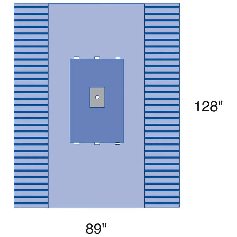 The extremity drape stands out with its absorbent reinforcement, circular elastic fenestration (2-1/2" diameter) positioned 77" from the longer end, and hook-and-loop line holders.