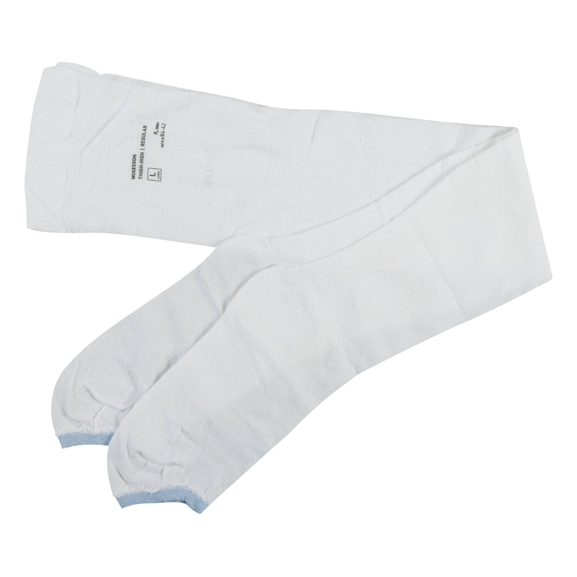 McKesson Anti-Embolism Stockings are designed to enhance blood circulation in the leg veins through graduated compression, offering 20-30 mmHg pressure from the ankle upwards. Made from nylon and spandex, these stockings provide not only effective compression but also ease of application, comfort, and breathability during use.