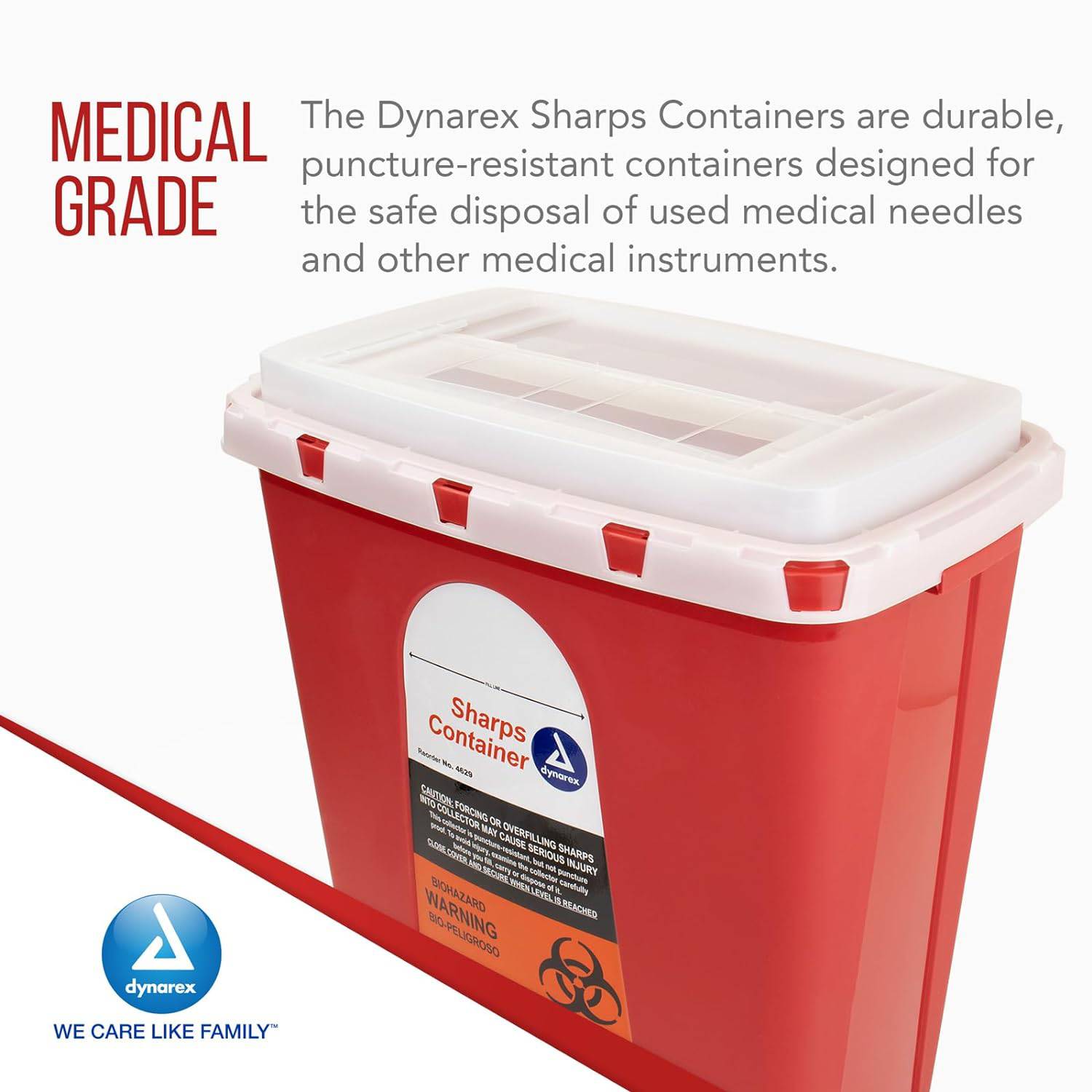 Dynarex Sharps Containers provide essential protection against sharps injuries for healthcare professionals and staff. These containers are designed to safely dispose of various types of used sharps, including needles, syringes, scalpels, lancets, and more. With an intuitive design featuring transparent lids, you can easily monitor the contents of the container without opening it, ensuring efficient operations and preventing overfilling.