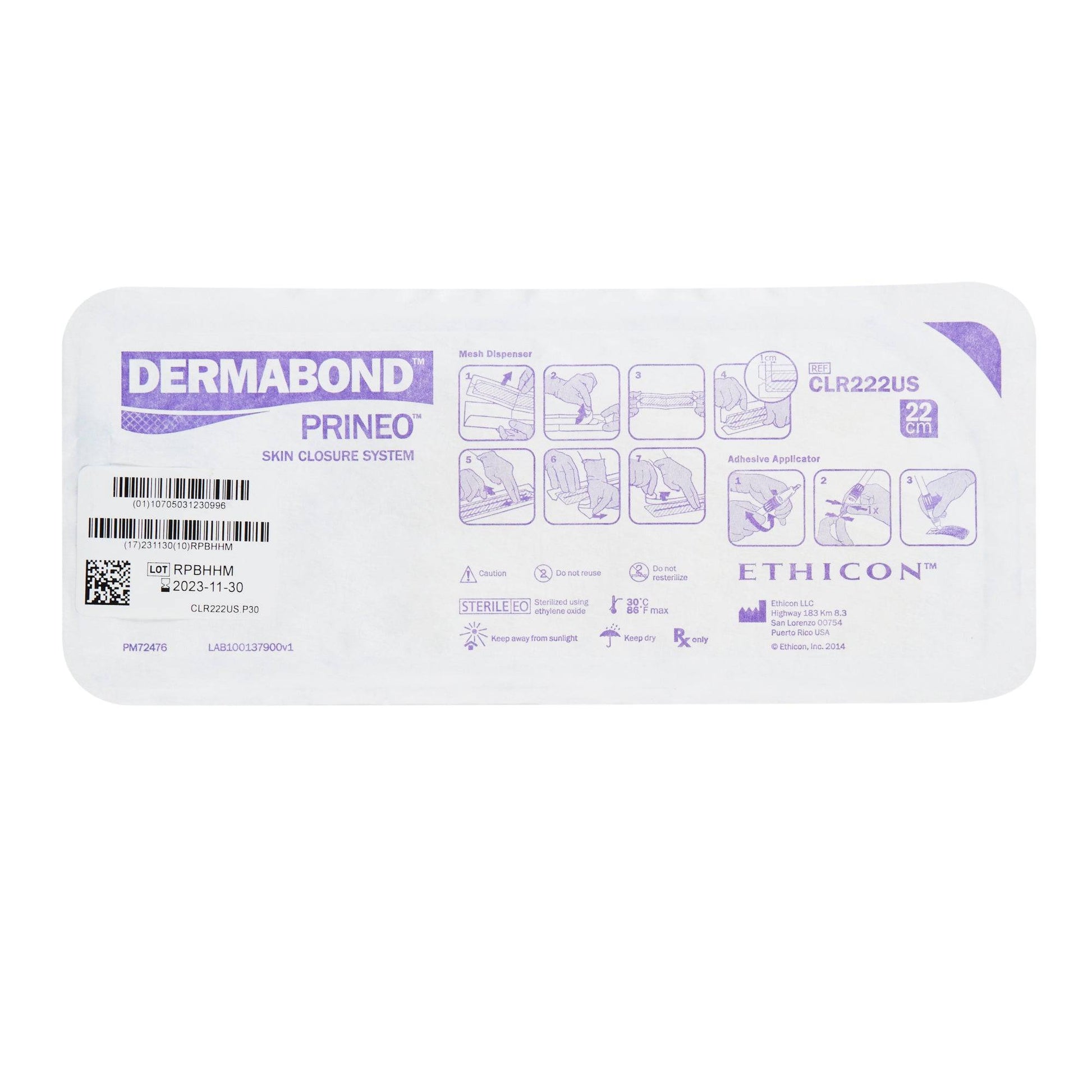 Part one includes an applicator and liquid adhesive, featuring 2-octylcyanoacrylate topical skin adhesive that provides strength and microbial protection in vitro. It sets in approximately 60 seconds when applied to the mesh tape.