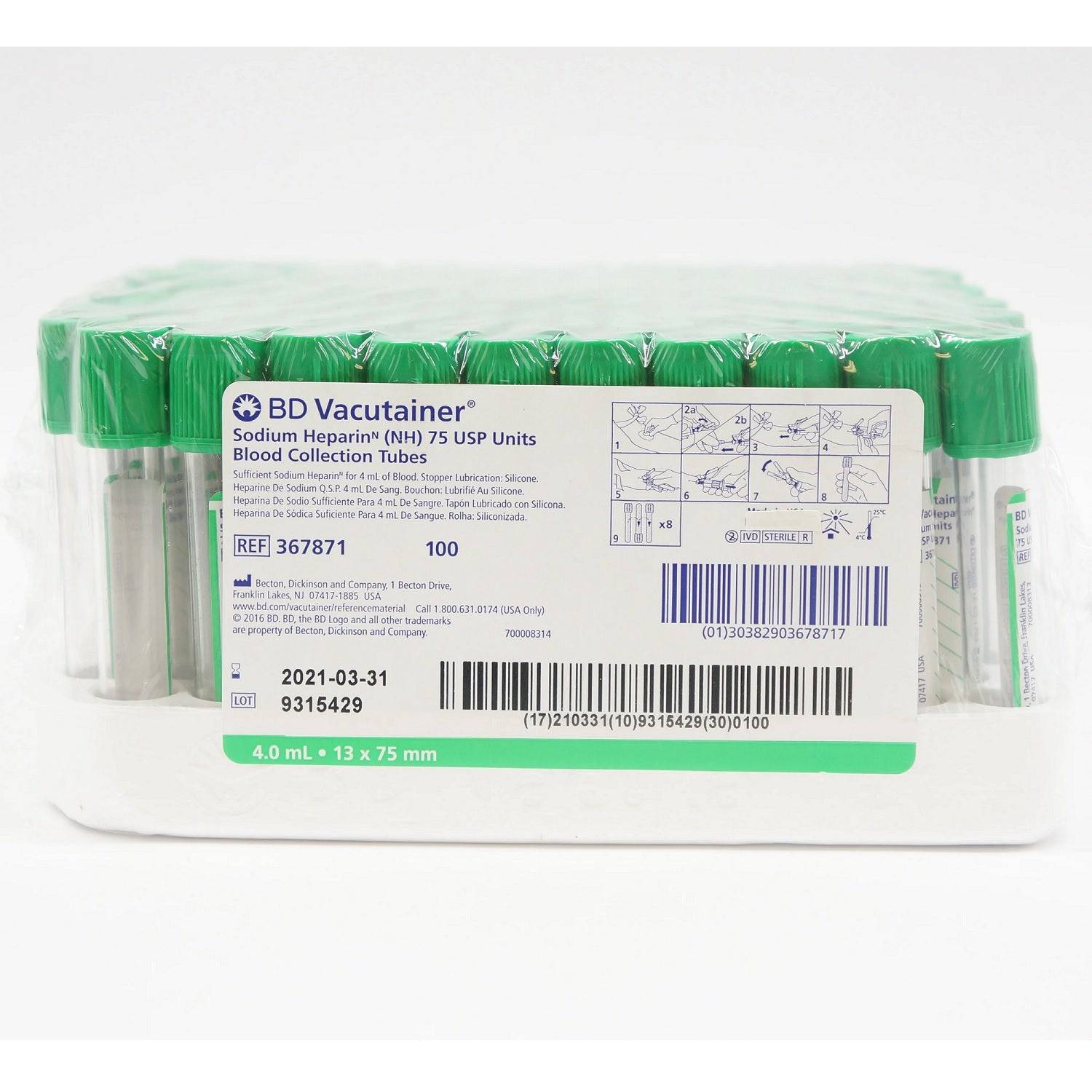 Enhance your sample collection with BD Vacutainer Heparin Tubes, available with sodium heparin coatings. Crafted from durable plastic and measuring 13 mm x 75 mm, these tubes offer a 4.0 mL draw volume, ensuring ample sample for plasma determinations in chemistry.